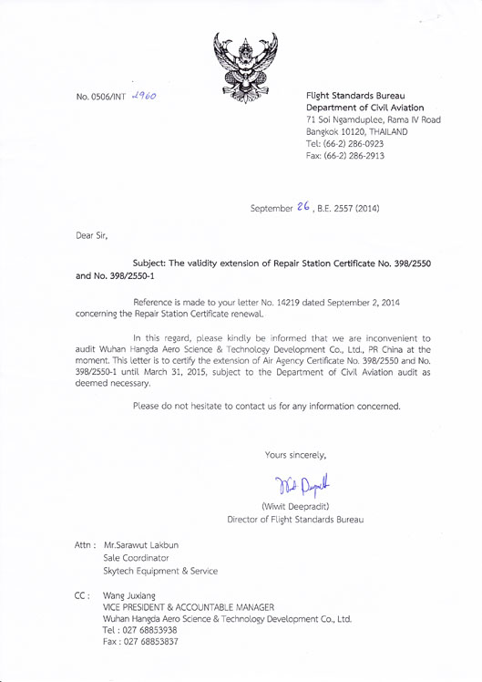 200110月    公司獲中國民航總局授權的民航維修許可證。
